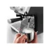 Odaberite omiljenu mješavinu kafe ili kapsulu i s lakoćom pripremite bogat, kremasti espresso sa savršenom pjenom Pripremite širok raspon mliječnih napitaka zahvaljujući ručnom Sustavu za cappuccino Funkcija za automatsko isključivanje pomaže Vam uštedjeti energiju Mat crna završna obrada sa srebrnim panelom